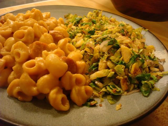 The Brussels sprouts are sliced into thin strips and sauteed with garlic and shallots - mmm mmm good!